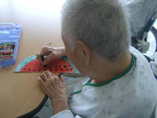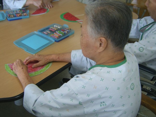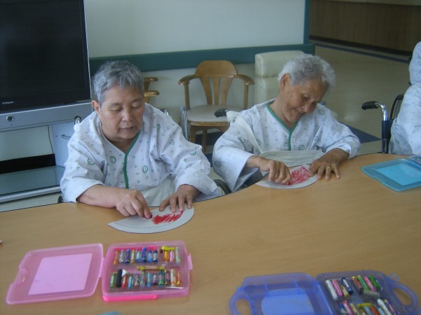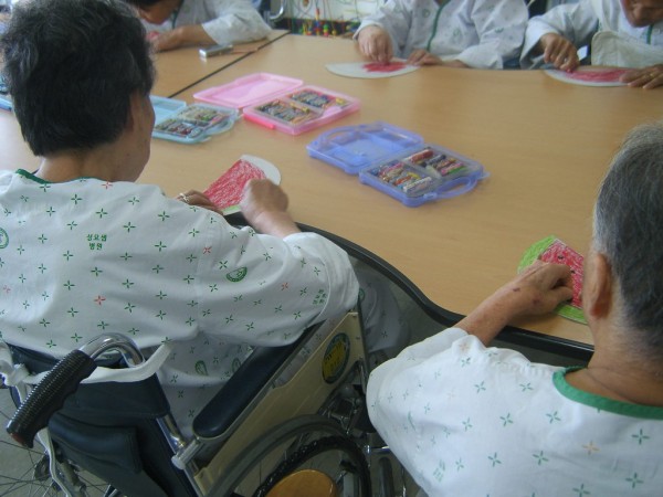 미술요법 시간에 수박 부채 만들기를 하셨습니다.