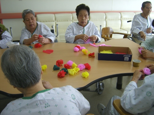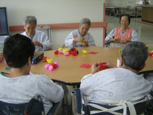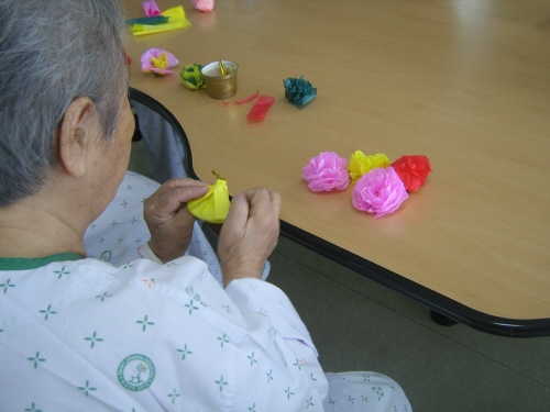 미술요법 시간에 습자지를 이용하여 예쁜 습자지 꽃 만들기를 하셨습니다.