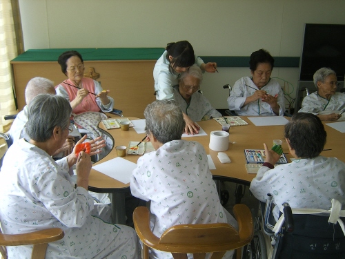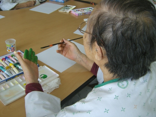 미술요법 시간으로 자신의 손을 이용하여 자유롭게 표현해보는 시간입니다.