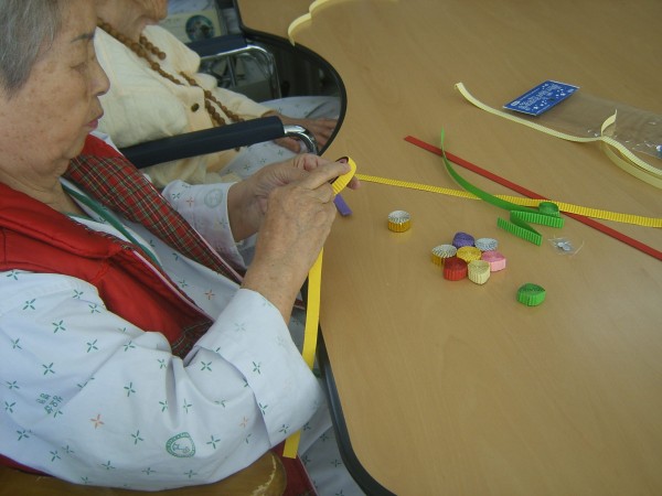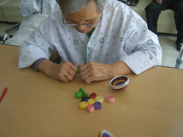 완성된 골판지 꽃을 보시며 현00 어르신은" 지금껏 미술프로그램 시간에 만든 작품 중에 이번 꽃이 제일 예쁜 것 같아" 라고 하며 너무 좋아 하셨습니다..
