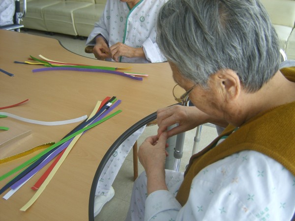 미술요법 시간에 골판지를 이용하여 골판지 꽃 만들기 프로그램을 하셨습니다.