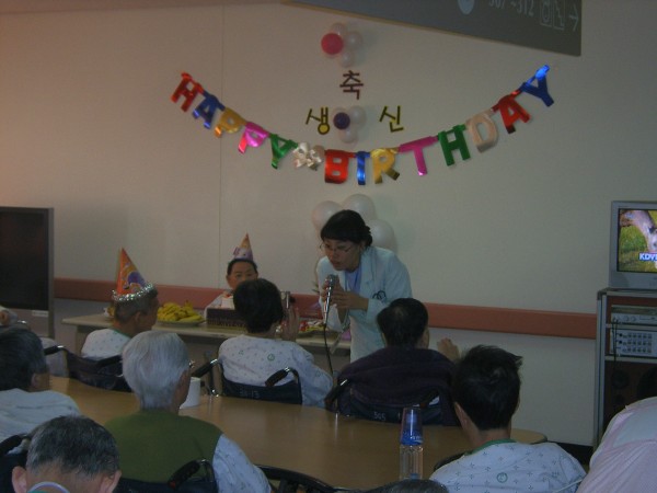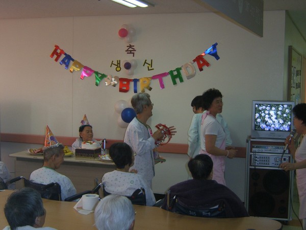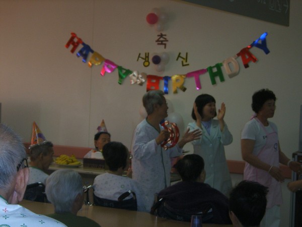 어르신들, 간병사님들, 봉사자 분들의 축하 노래를 부르며 즐거운 시간을 보내셨습니다.