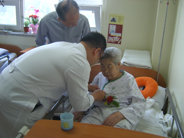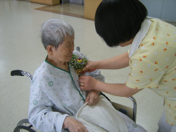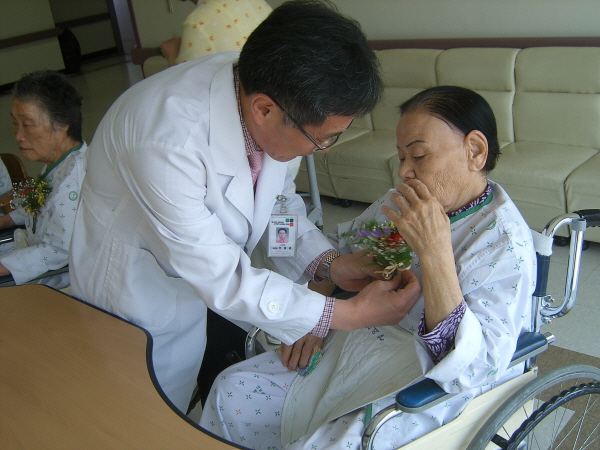 5월 어버이날을 맞이하여 직원일동이 병동을 돌며 어르신들께 카네이션을 달아드렸습니다.