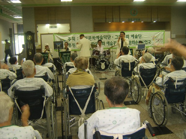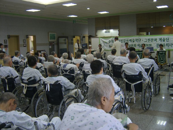8월 18일 어르신들이 병원생활을 활기차고 즐겁게 하실 수 있도록 그린문화예술단에서