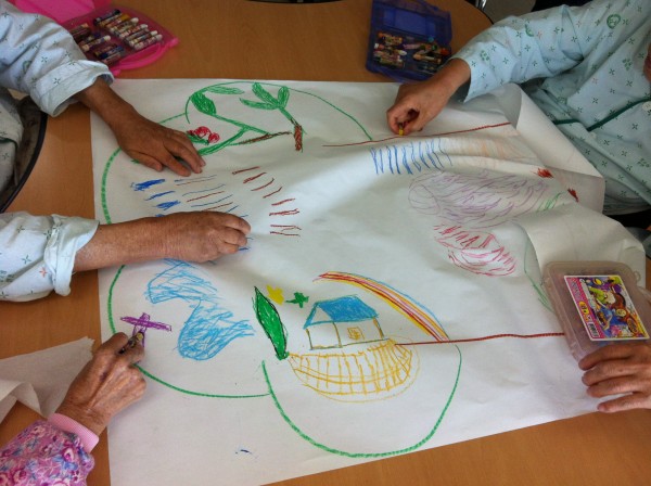 서로 이야기를 하며 재미있게 모두의 나무를 꾸몄습니다.