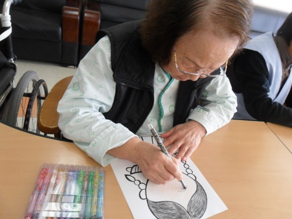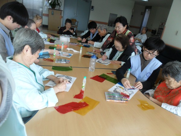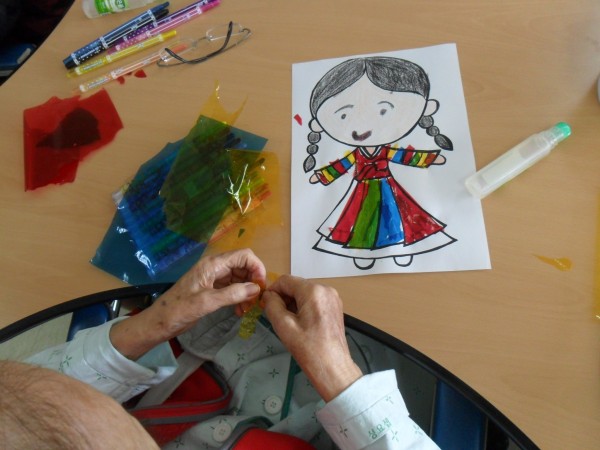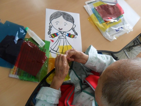 셀로판지로 꾸며서 '입체적이고 예뻐요~"라고 어르신들은 미소를 지었습니다.