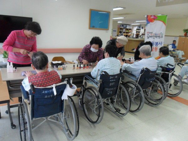 '네일아트'로 어르신들의 손톱도 화사해지고 어느새 기분도 새로워졌어요.