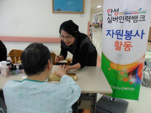 노인복지회관에서 어르신들의 손톱을 예쁘게 가꾸어주실 분들이 오셨습니다.