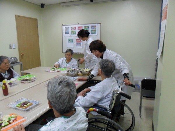 영양실과 협조하여 어르신들에게 요리치료 프로그램을 제공하여 드렸습니다.