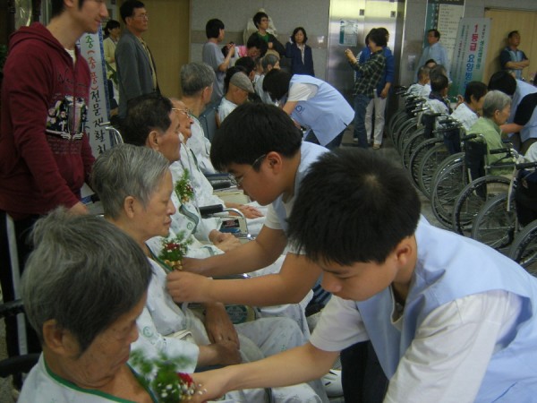 5월 어버이날을 맞이하여 안성 " 연사모" 회원 분들의 멋진 공연과 자원봉사자 학생들의 어르신들께 카네이션을 달아 드렸습니다.